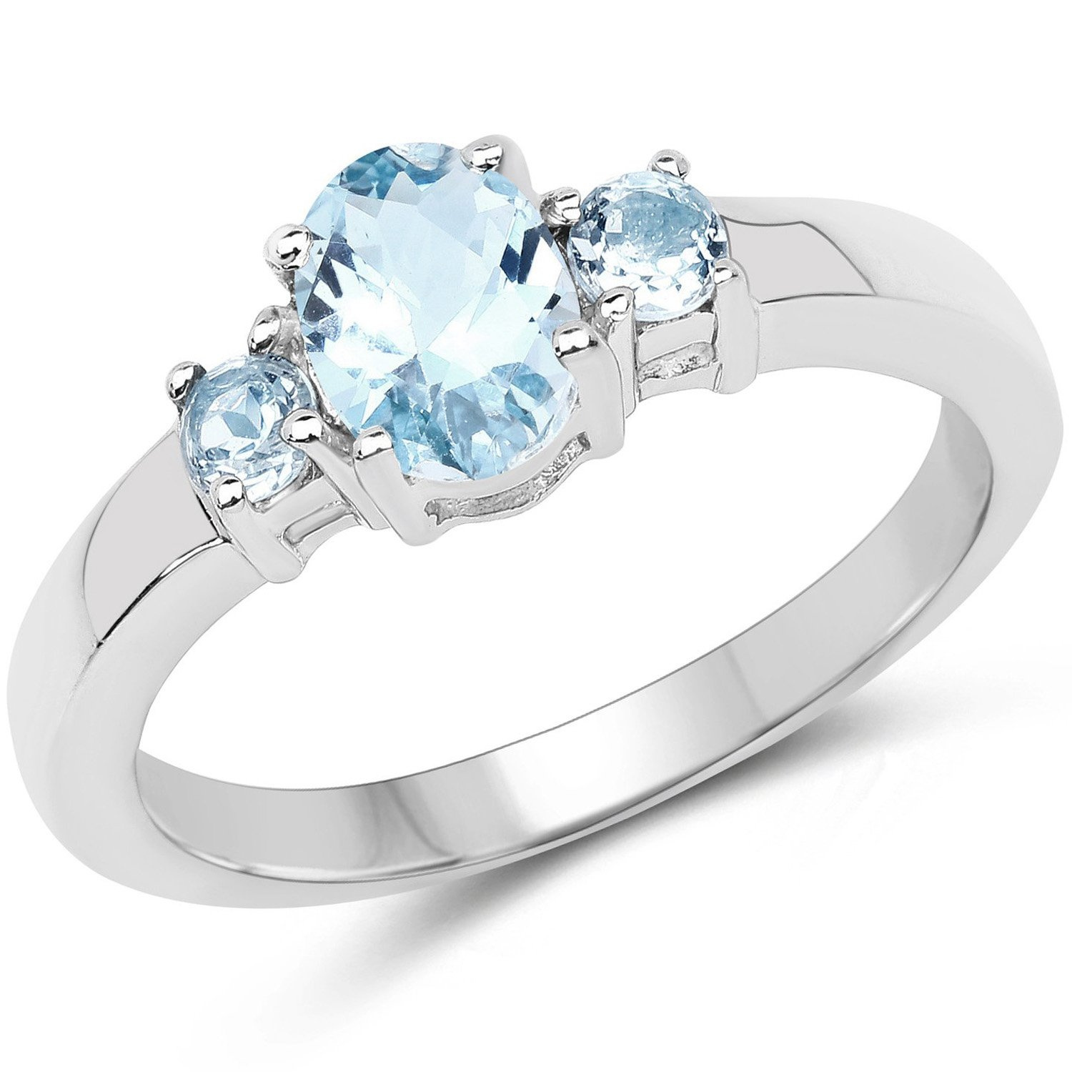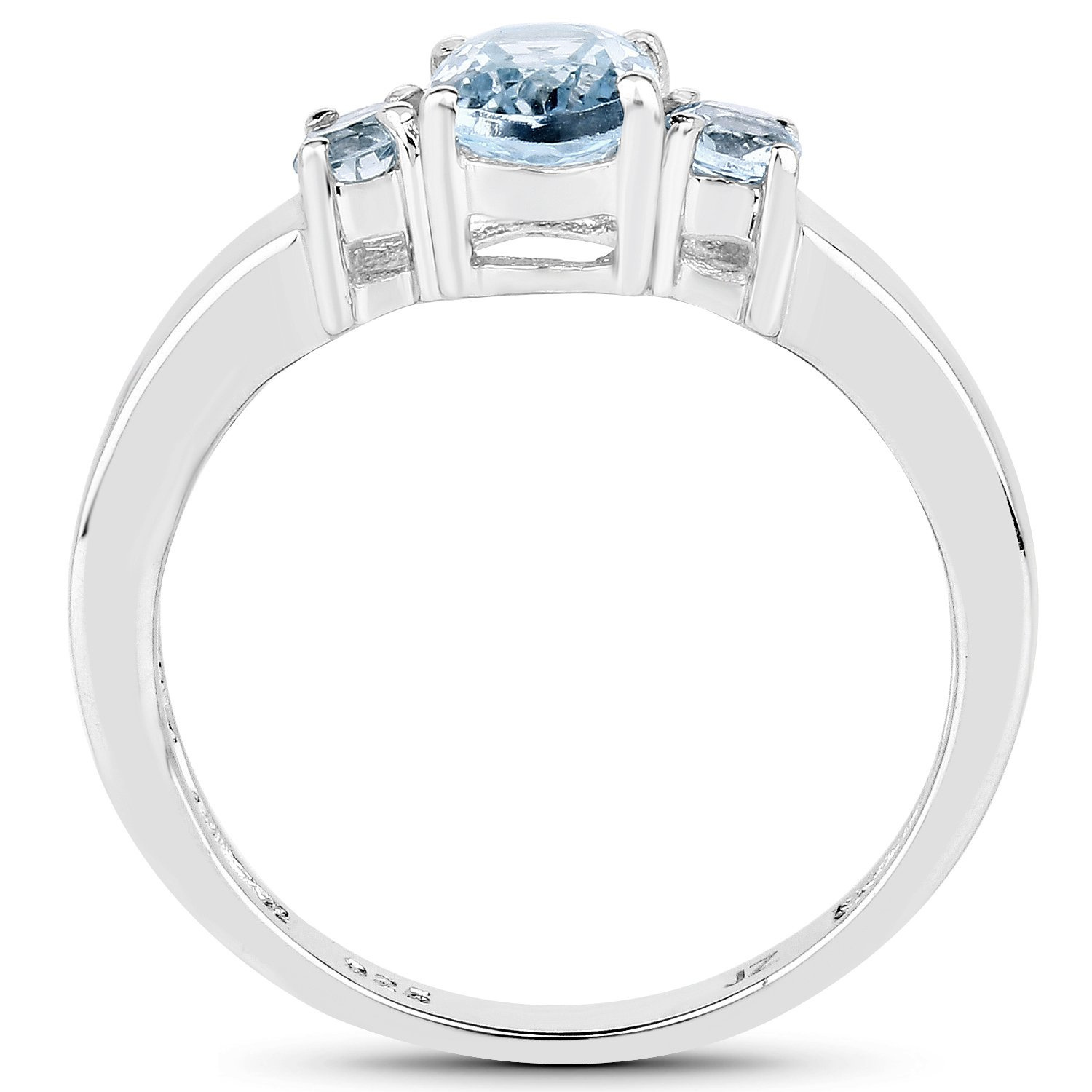 Klasyczny srebrny pierścionek z naturalnymi brazylijskimi topazami niebieskimi o pięknym szlifie i lazurowym kolorze, osadzonymi w rodowanym srebrze najwyższej próby 925.