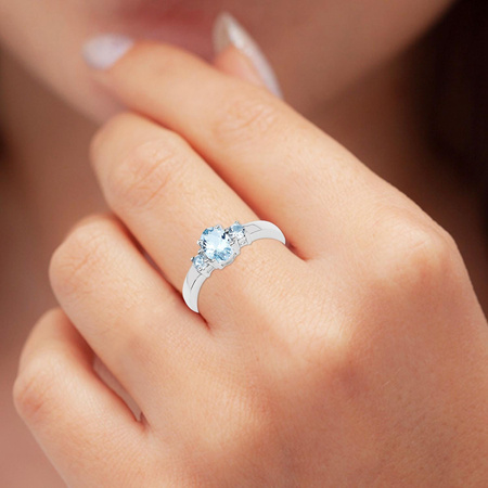 Naturalny topaz niebieski - owal: Ilość/Waga: 1/1.00 ct, Kształt/Wielkość: Owal/7x5 mmNaturalny topaz niebieski - okrągły: Ilość/Waga: 2/0.24 ct, Kształt/Wielkość: Okrągły/3 mmWielkość korony pierścionka: ok. 6x11 mmWłaściwości kamieni