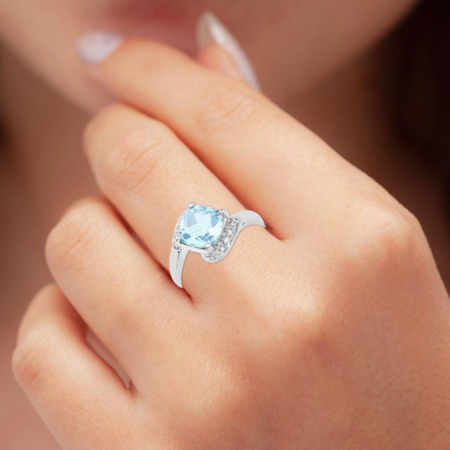 Naturalny topaz niebieski: Ilość/Waga: 1/2.50 ct, Kształt/Wielkość: Poduszka/8 mmNaturalny kryształ górski: Ilość/Waga: 8/0.04 ct, Kształt/Wielkość: Okrągły/1mmWielkość korony pierścionka: 10x10 mmKod produktu: 2043BWłaściwości kamieni