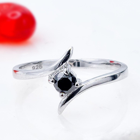 Czy marzysz o wyjątkowym i pięknym pierścionku zaręczynowym, który będzie oddawał Twoją miłość i uczucia w sposób niezwykle subtelny? Przedstawiamy Tobie ten oto piękny srebrny pierścionek z naturalnym czarnym diamentem wykonany ze srebra rodowanego próby 925. Jest to prawdziwe dzieło sztuki jubilerskiej, które z pewnością poruszy Twoje serce i serce Ukochanej. ❤️