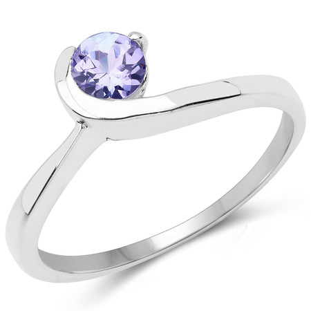 Elegancki srebrny pierścionek z naturalnym okrągłym tanzanitem z Tanzanii. Pierścionek jest wykonany ze srebra rodowanego próby 925.