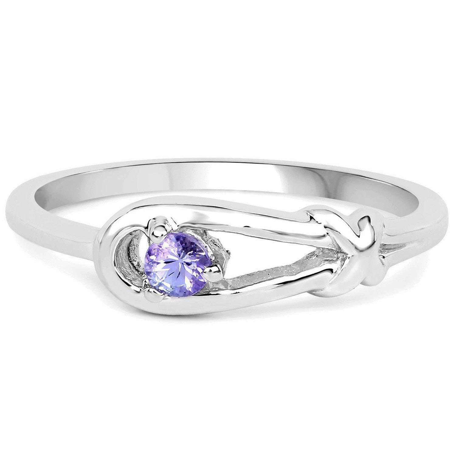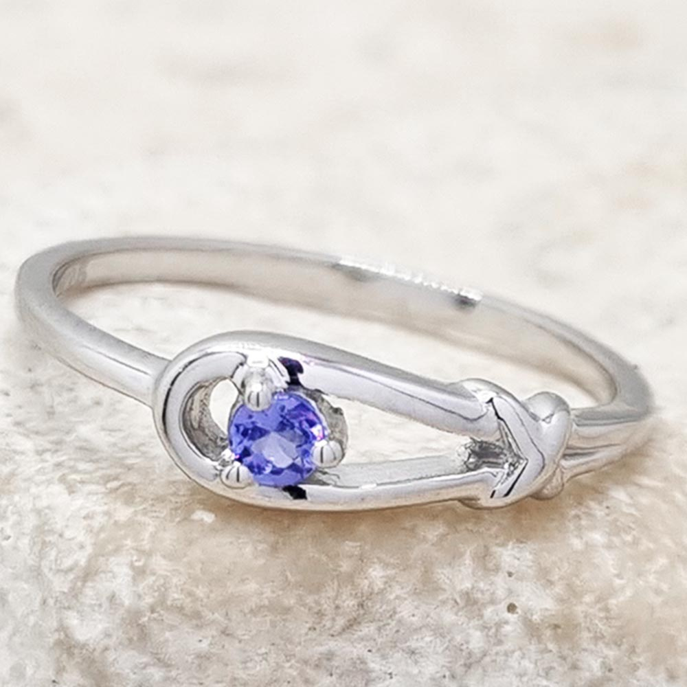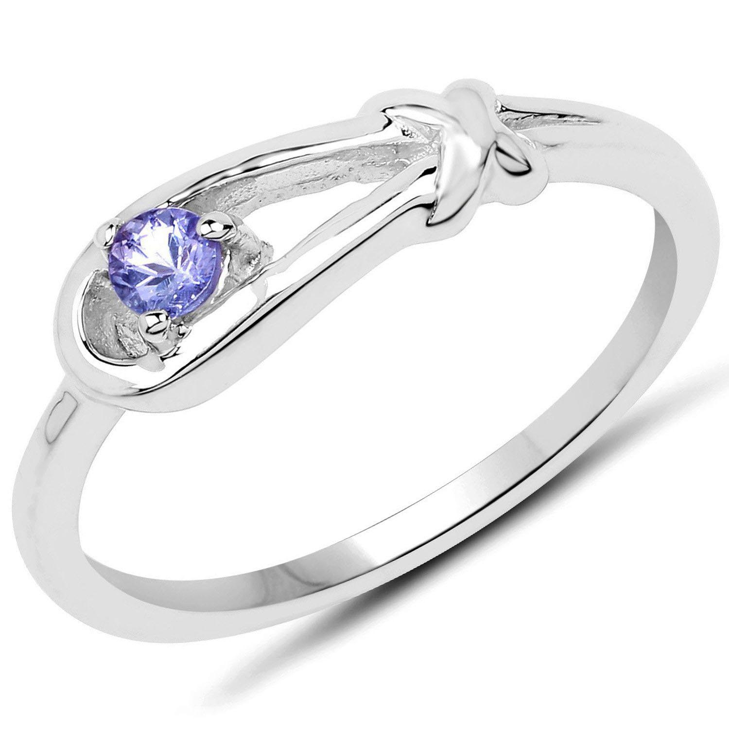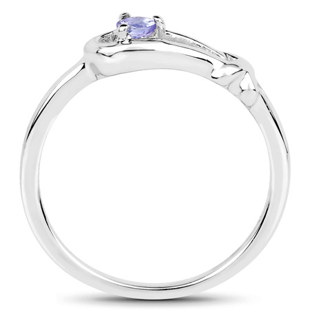 Dziewczęcy srebrny pierścionek z rzadkim naturalnym kamieniem szlachetnymi - tanzanitem. Pierścionek jest wykonany ze srebra rodowanego próby 925.