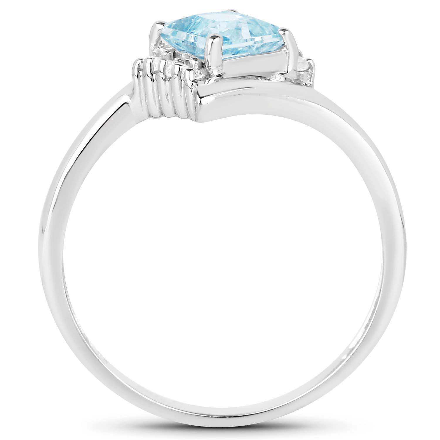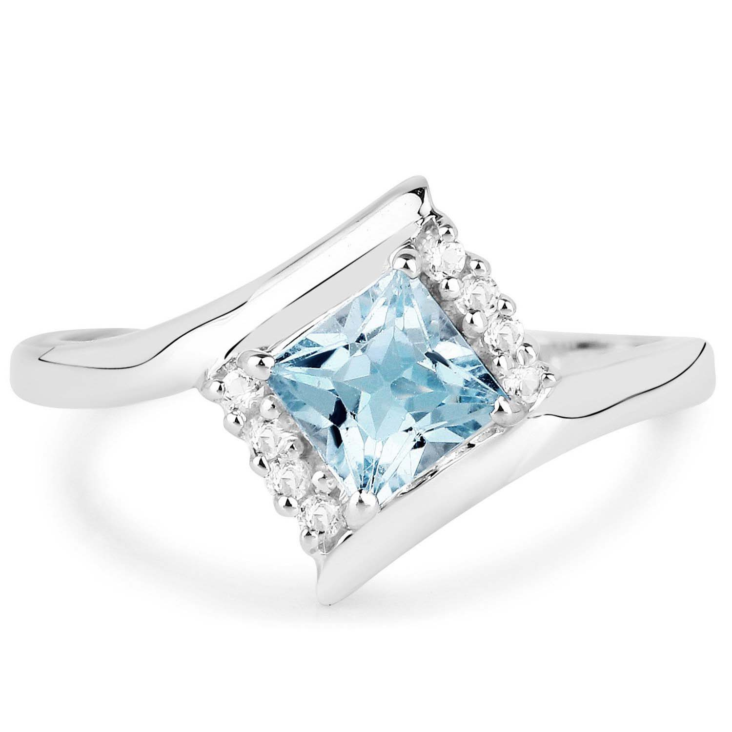 Naturalny topaz niebieski: Ilość/Waga: 1/0.75 ct, Kształt/Wielkość: Kwadrat/5 mmNaturalny kryształ górski: Ilość/Waga: 8/0.08 ct, Kształt/Wielkość: Okragły/1.2 mmWielkość korony pierścionka: ok. 11x10 mmKod produktu: 1524BWłaściwości kamieni