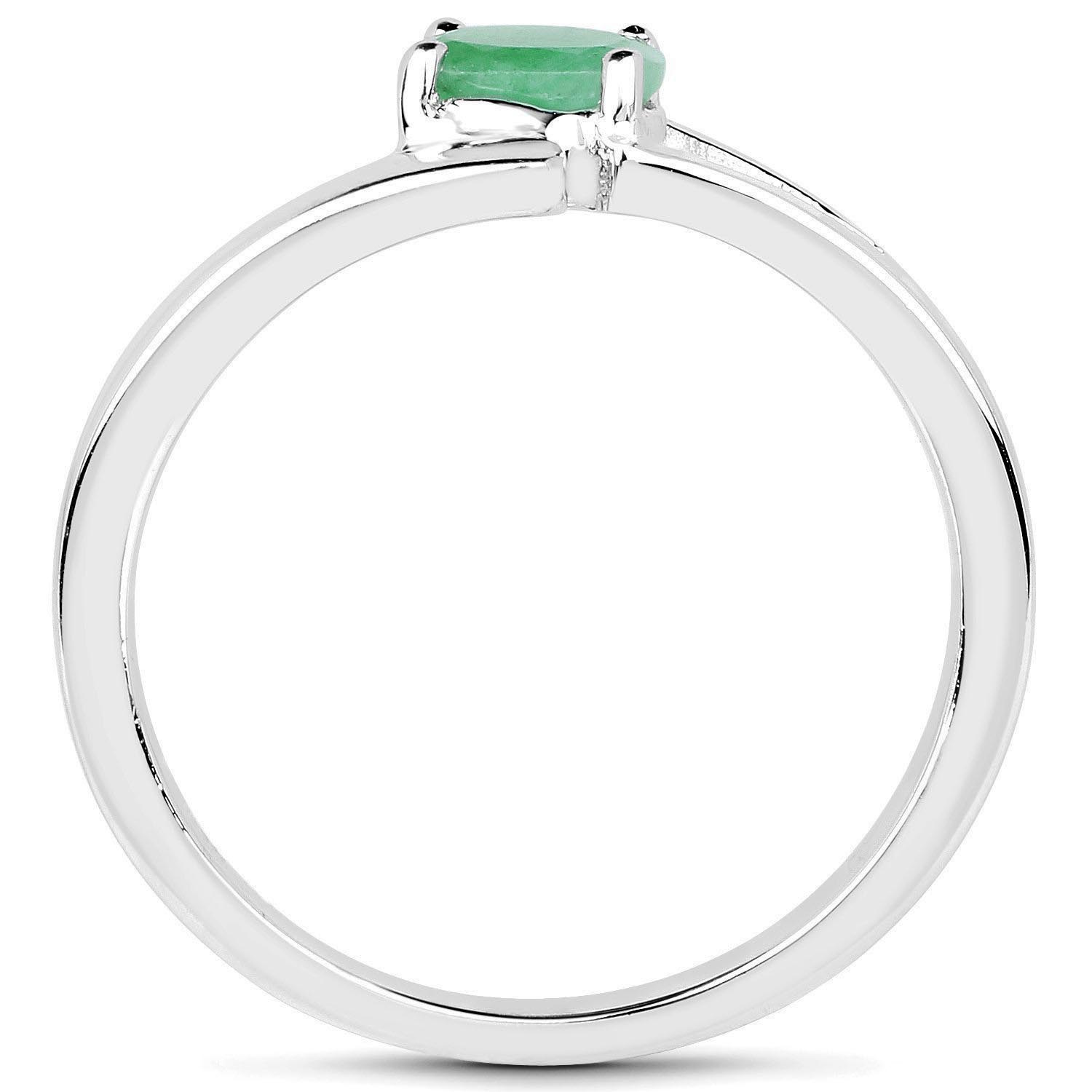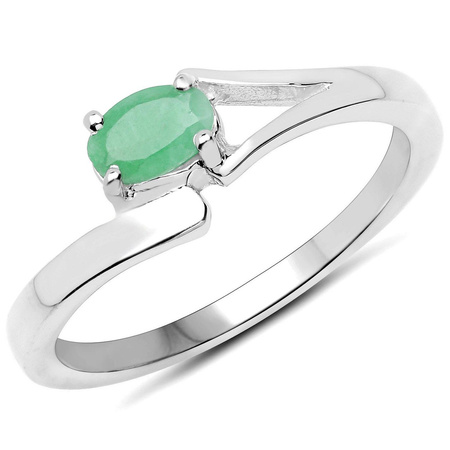 Subtelny srebrny pierścionek z rodowanego srebra najwyższej próby 925 z naturalnym szmaragdem kolumbijskim o intensywnym kolorze.