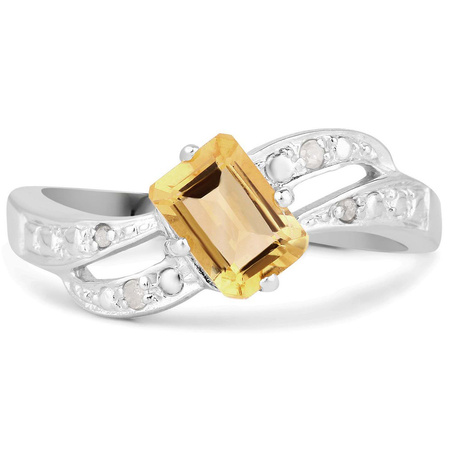 Naturalny cytryn: Ilość/Waga: 1/1,20 ct, Kształt/Wielkość: Ośmiokąt/7x5 mmNaturalny diament : Ilość/Waga: 4/0.03 ct, Kształt/Wielkość: Okrągły/1-1.30 mmWielkość korony pierścionka: ok. 17x8 mmWłaściwości kamieni