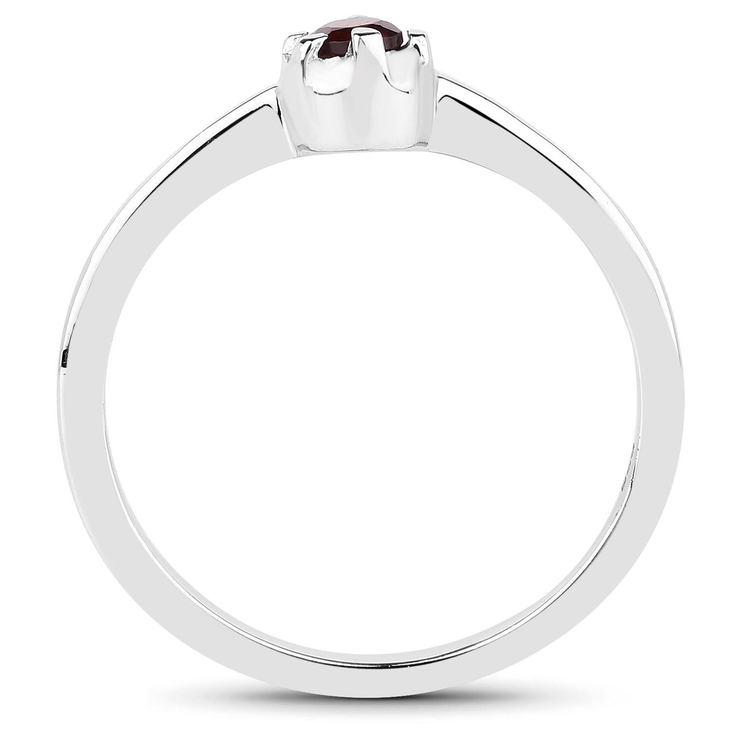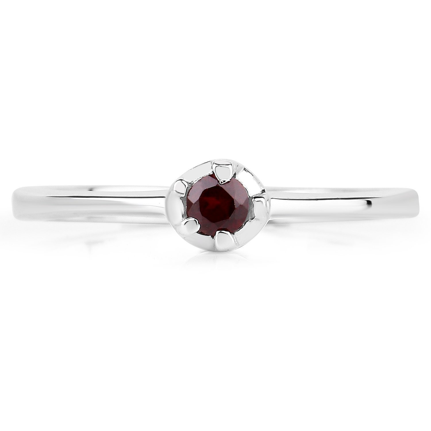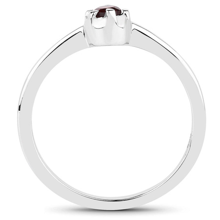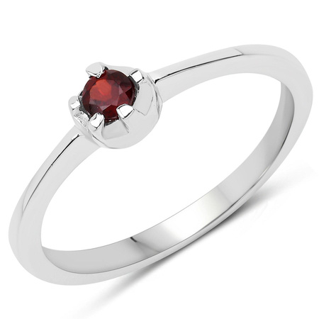Delikatny pierścionek wykonany z rodowanego srebra najwyższej próby 925 z naturalnym granatem.