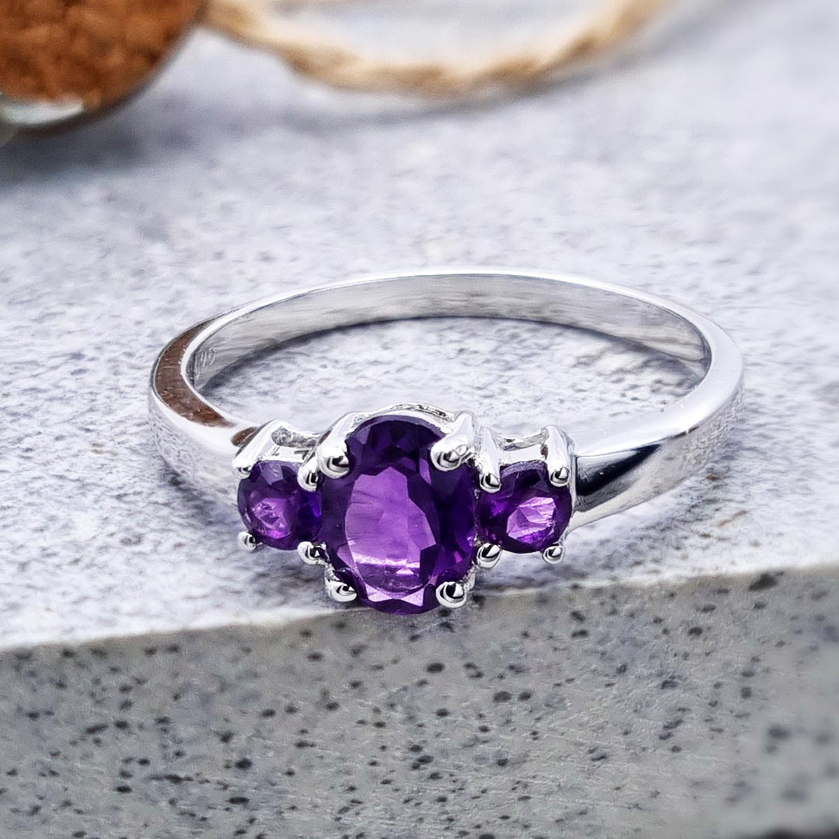 Klasyczny srebrny pierścionek z 3 naturalnymi ametystami. Pierścionek ze srebra rodowanego próby 925.