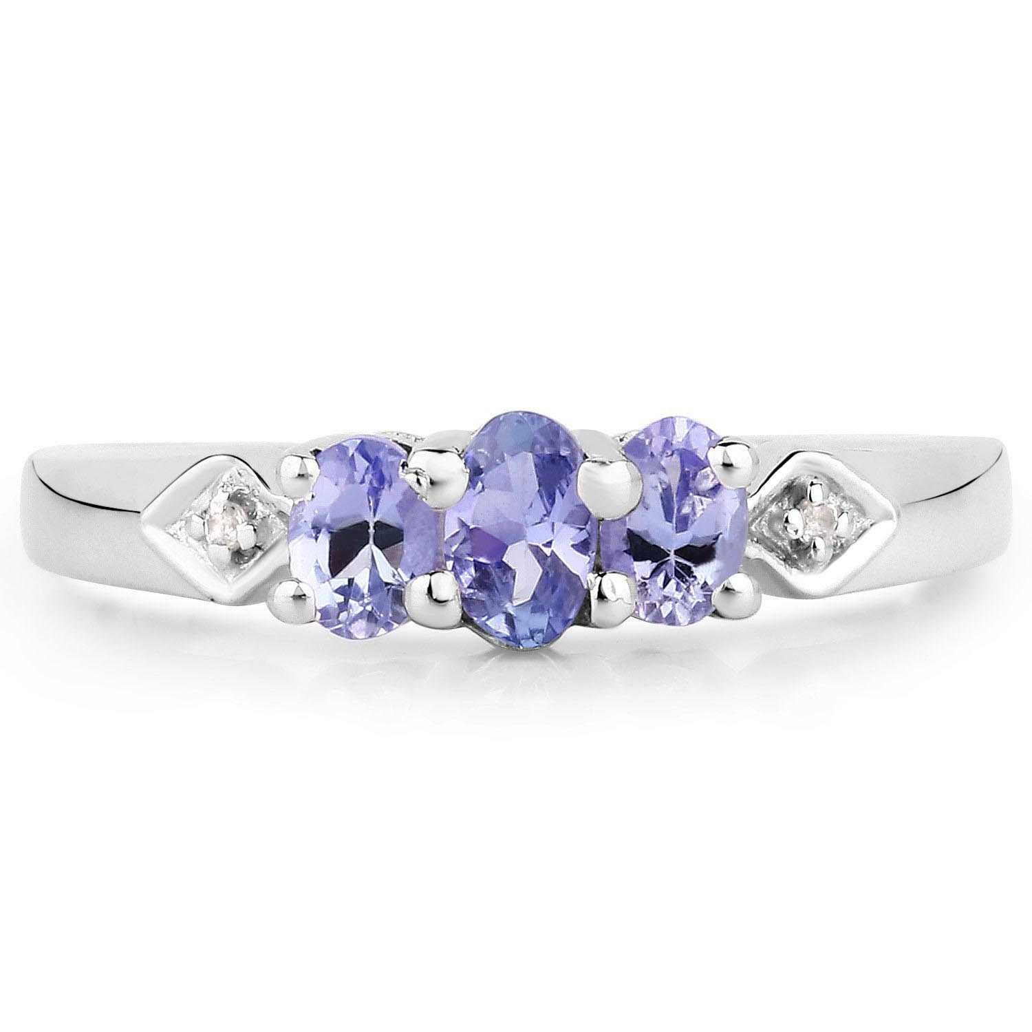 Naturalny tanzanit: Ilość/Waga: 3/0,59 ct, Kształt/Wielkość: Owalny/5x3 mm, 4x3 mmNaturalny kryształ górski: lość/Waga: 2/0,01 ct, Kształt/Wielkość: Okrągły/1mmWielkość korony pierścionka: ok. 5x10 mmWłaściwości kamieni