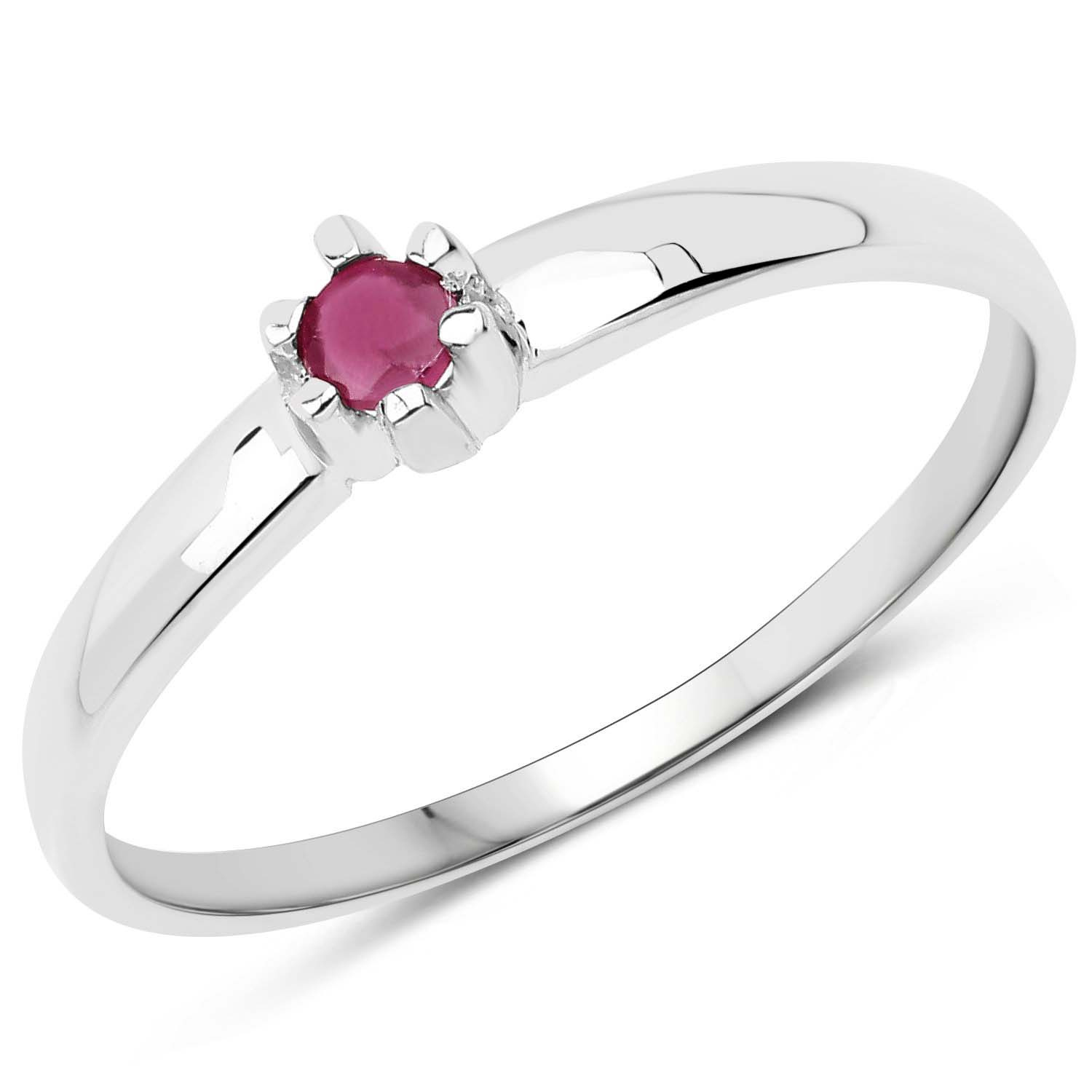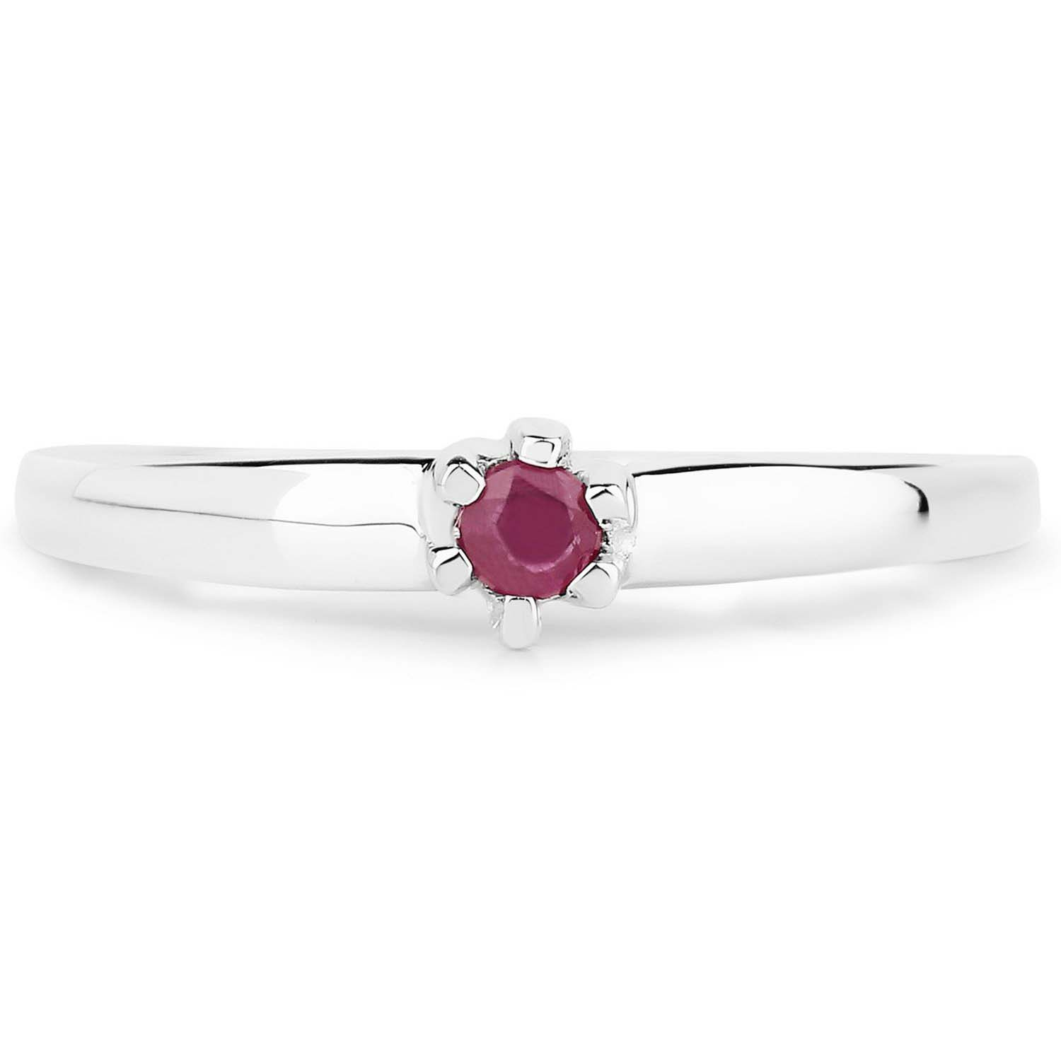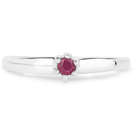 Drobny srebrny pierścionek z przepięknym naturalnym rubinem. Pierścionek wykonany ze srebra najlepszej próby 925 i dodatkowo rodowany.