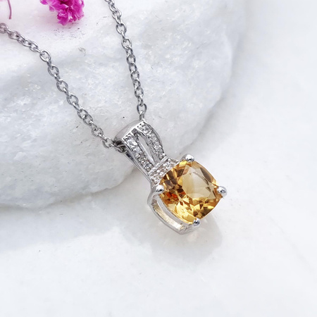 Srebrny wisiorek z naturalnym cytrynem i cyrkoniami + srebrny łańcuszekKruszec: