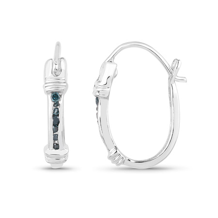 Szykowne srebrne kolczyki wykonane z rodowanego srebra najlepszej próby 925, wysadzane naturalnymi niebieskimi diamentami.