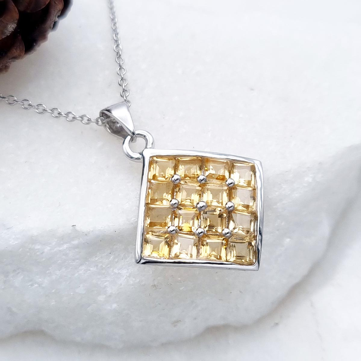 Naturalny cytryn: Ilość/Waga: 16/2,40 ct, Kształt/Wielkość: Kwadrat/2,90 mm Wielkość wisiorka: ok. 30x20x4 mmDługość łańcuszka: ok. 45 cmWłaściwości kamieni