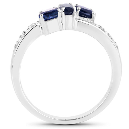 Srebrny pierścionek z naturalnymi szafirami niebieskimi i diamentamiKruszec: