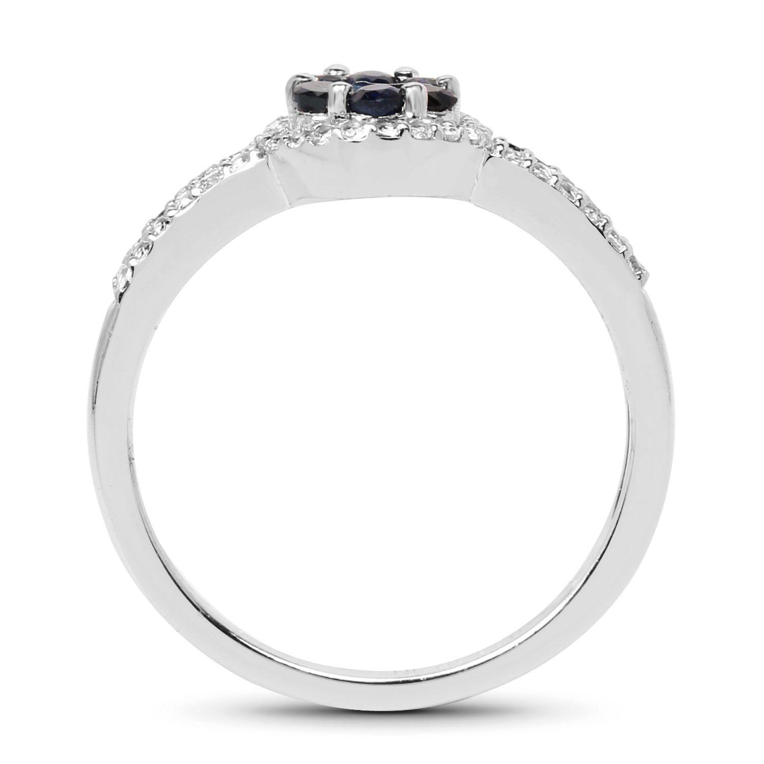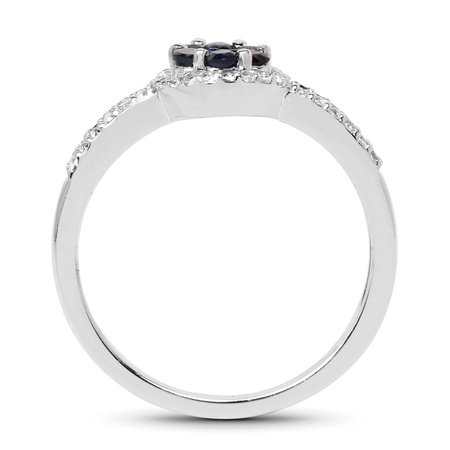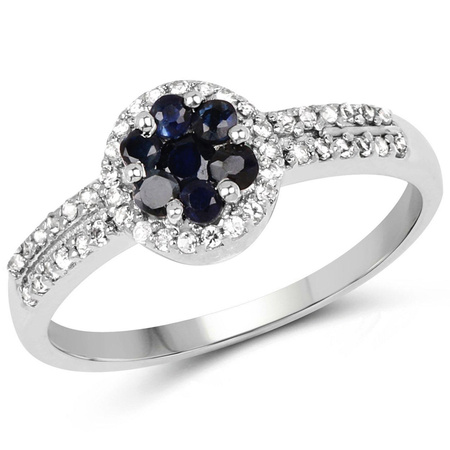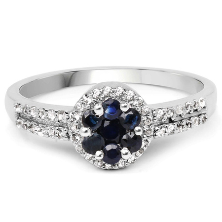 Srebrny pierścionek z naturalnymi szafirami niebieskimi i kryształami górskimiKruszec: