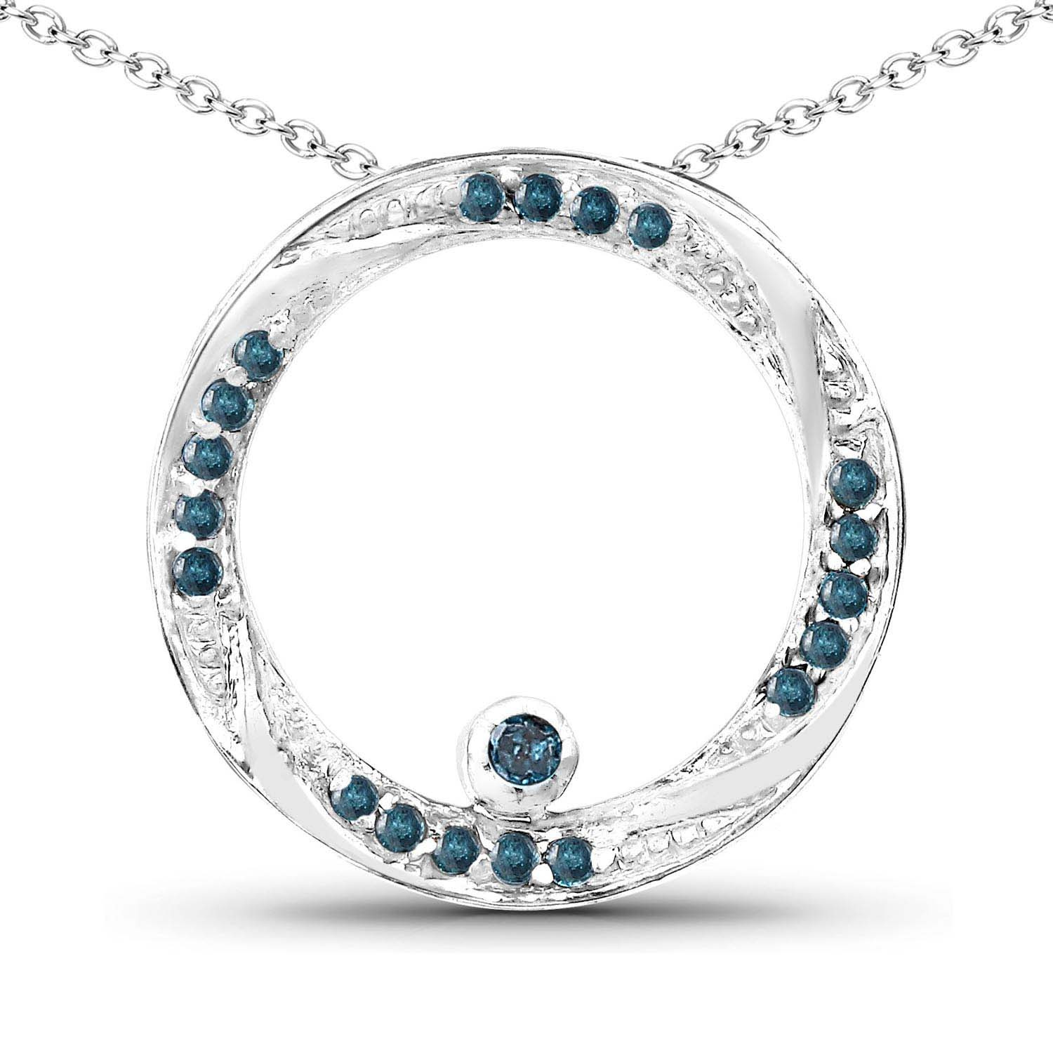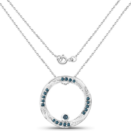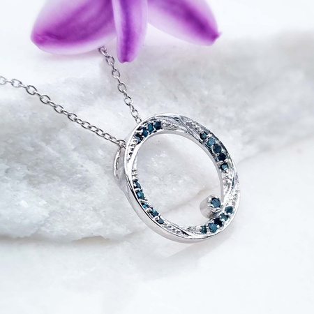 Uroczy srebrny wisiorek z 21 naturalnymi niebieskimi diamentami. Biżuteria najwyższej jakości wykonana ze srebra rodowanego próby 925.