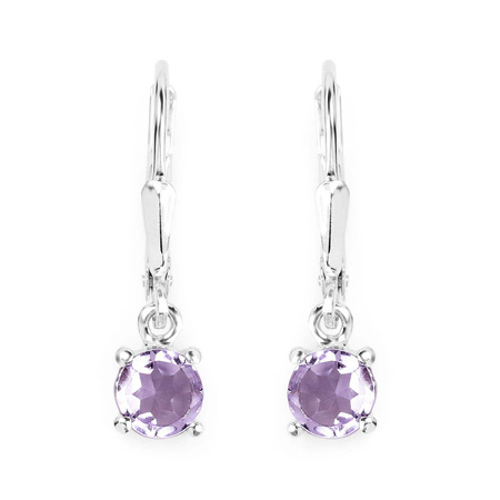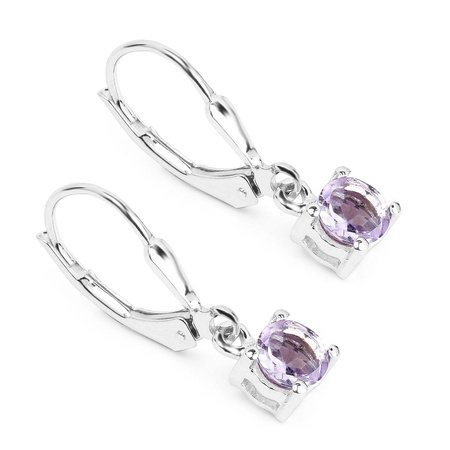 Wiszące srebrne kolczyki z naturalnymi różowymi ametystami wykonane z najwyższej próby rodowanego srebra.