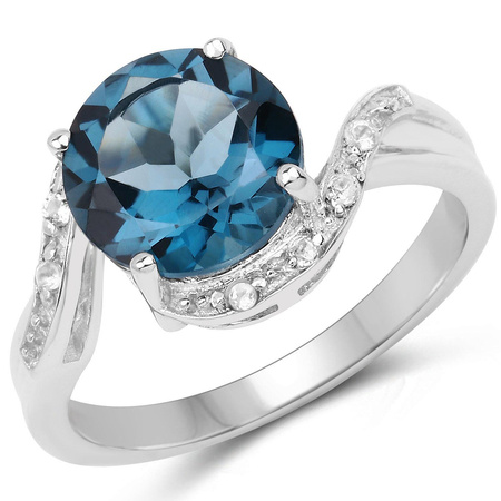 Pierścionek z topazem London Blue i kryształami górskimi 3,41 ct