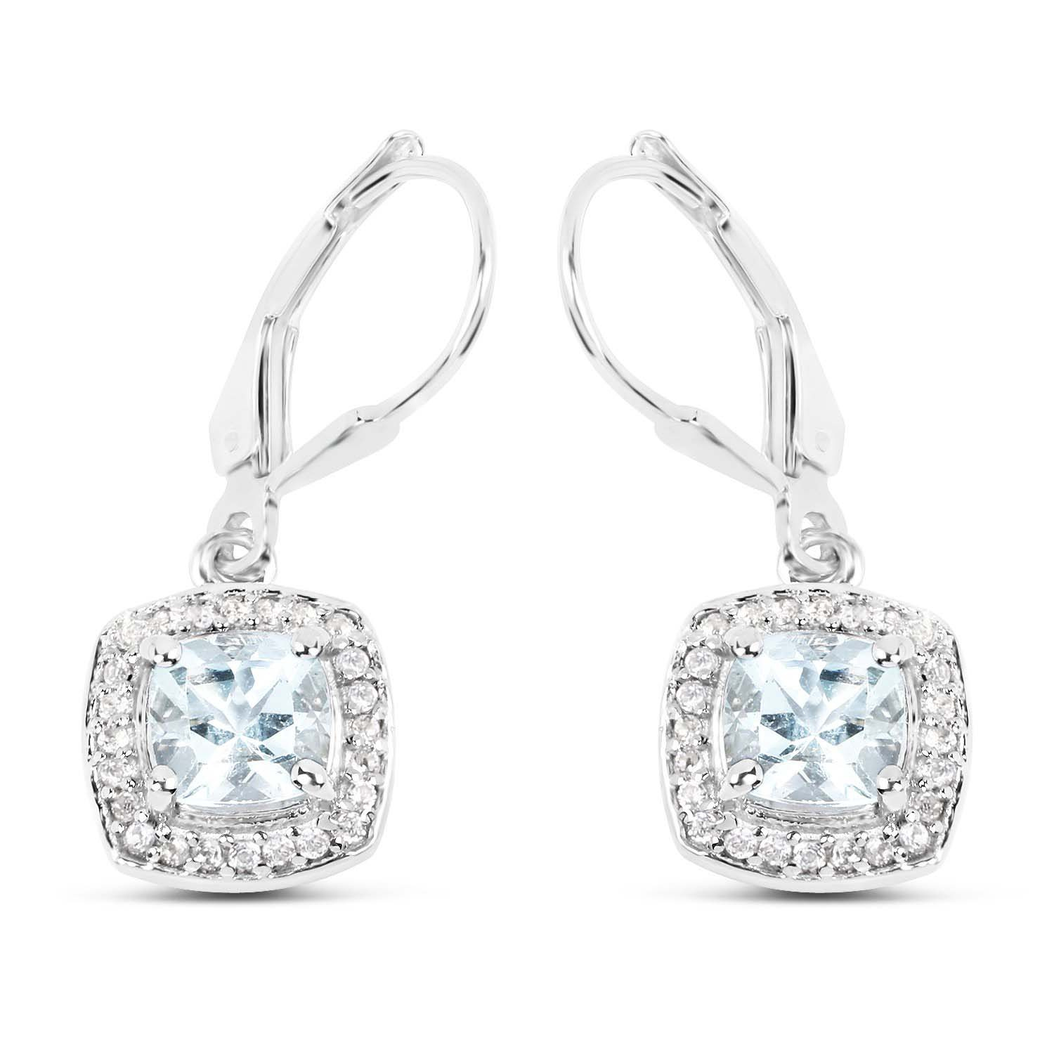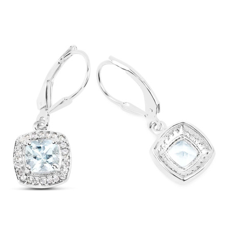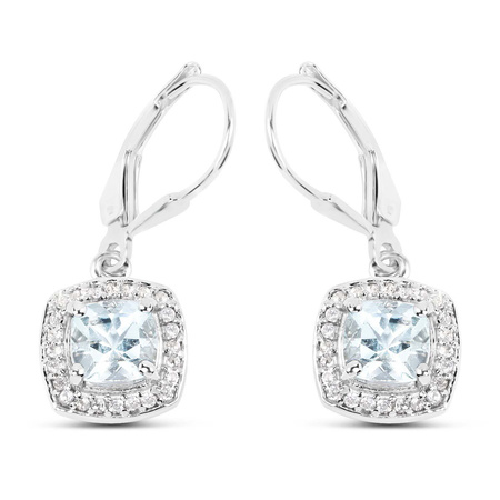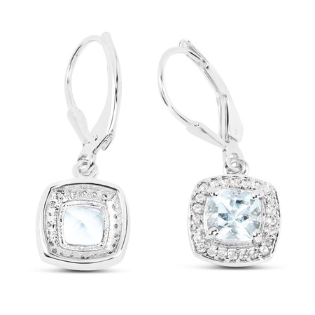 Naturalny akwamaryn: Ilość/Waga: 2/1.90 ct, Kształt/Wielkość: Poduszka/6 mmNaturalny kryształ górski: Ilość/Waga: 48/0.24 ct, Kształt/Wielkość: Okrągły/1 mmWielkość kolczyków: ok. 29x11 mmWłaściwości kamieni