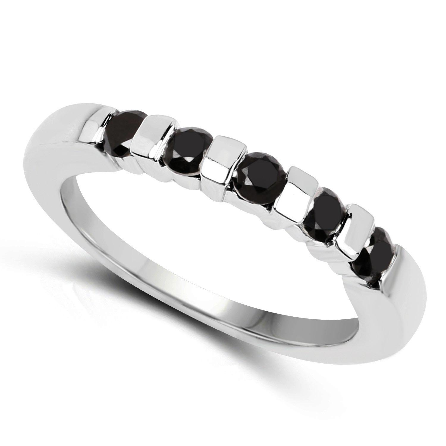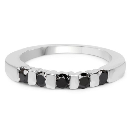 Subtelny srebrny pierścionek z 5 naturalnymi czarnymi diamentami. Pierścionek wykonany z rodowanego srebra próby 925.