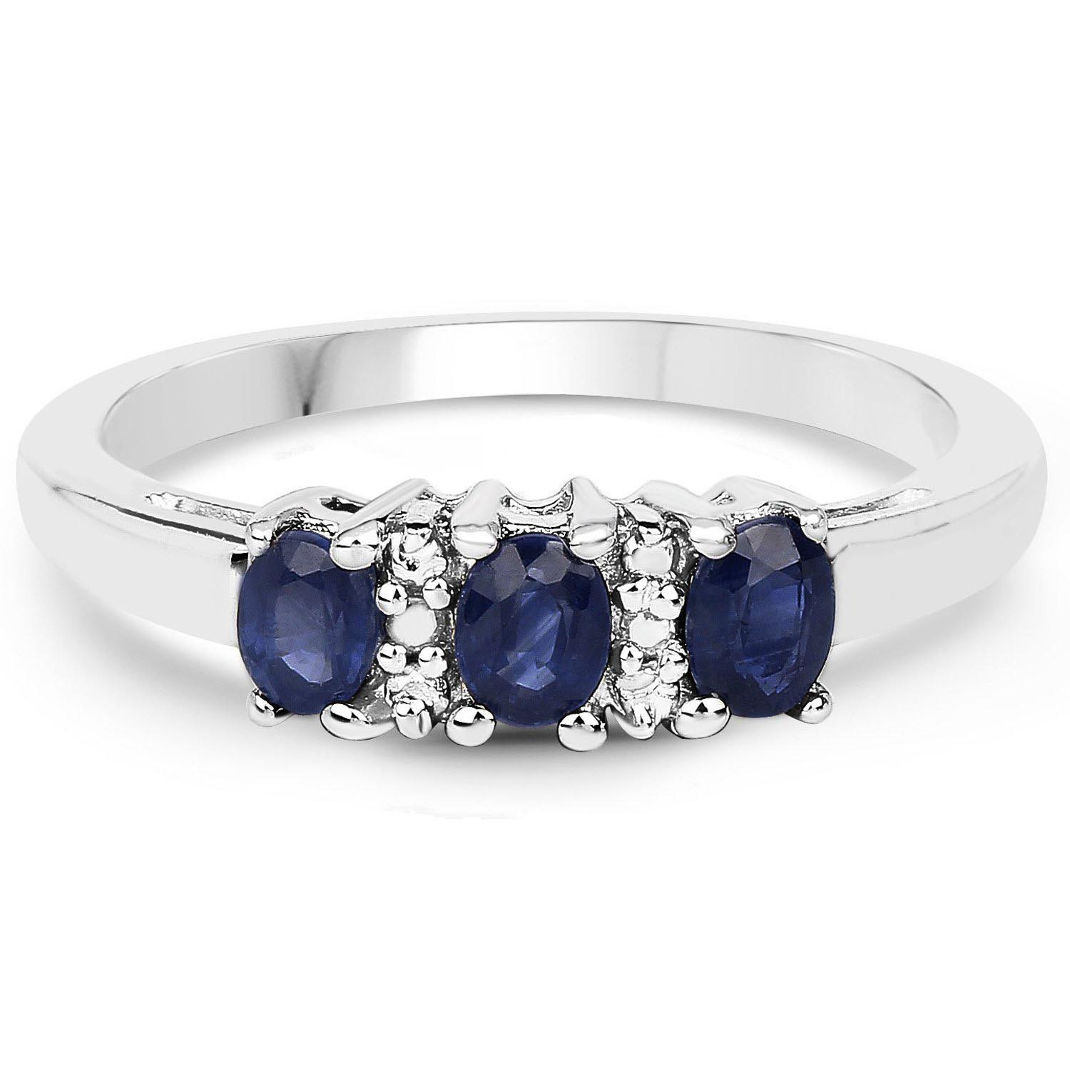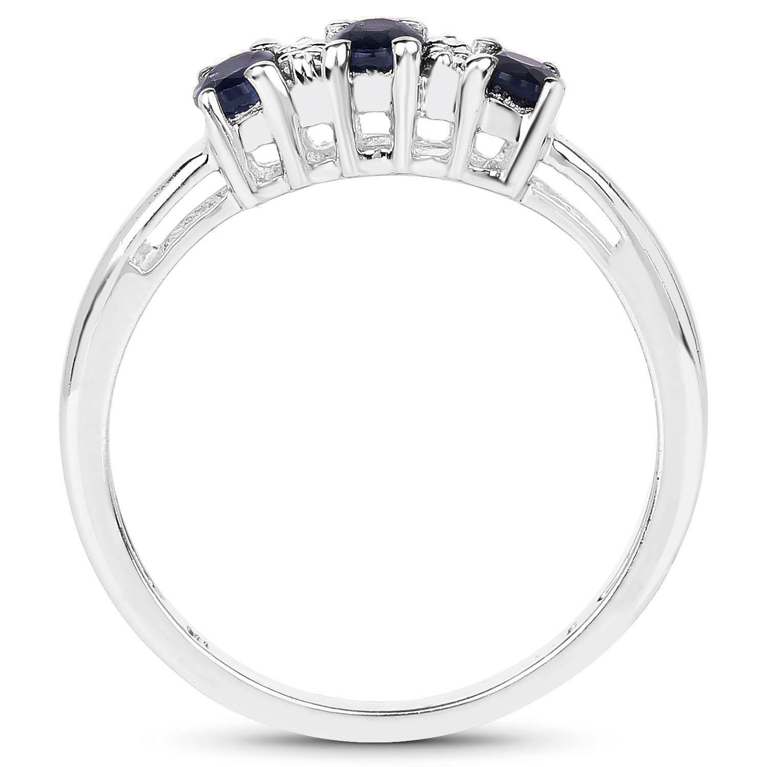 Kobiecy srebrny pierścionek z naturalnymi szafirami niebieskimi i diamentami. Wykonany ze srebra rodowanego próby 925.