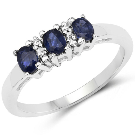 Srebrny pierścionek z naturalnymi szafirami niebieskimi i diamentamiKruszec: