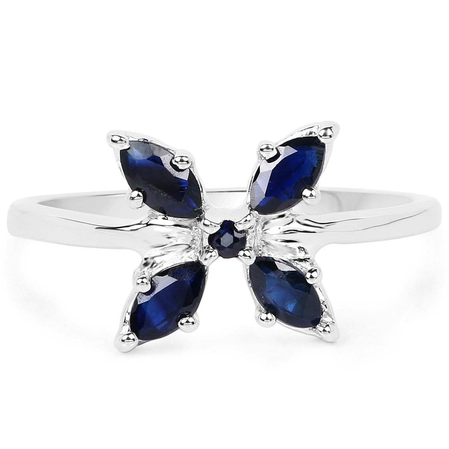 Naturalny szafir niebieski: Ilość/Waga: 5/0.63 ct, Kształt/Wielkość: Markiza/5x2.50 mm (4 szt); Okrągły1.80 mm (1 szt)/Wielkość korony pierścionka: ok. 11x11 mmWłaściwości kamieni