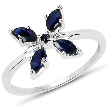 Srebrny pierścionek z naturalnymi szafirami niebieskimiKruszec: