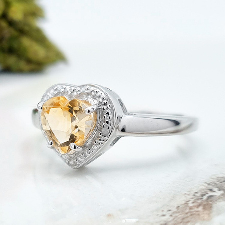Pierścionek z serduszkiem z cytrynem oraz diamentami