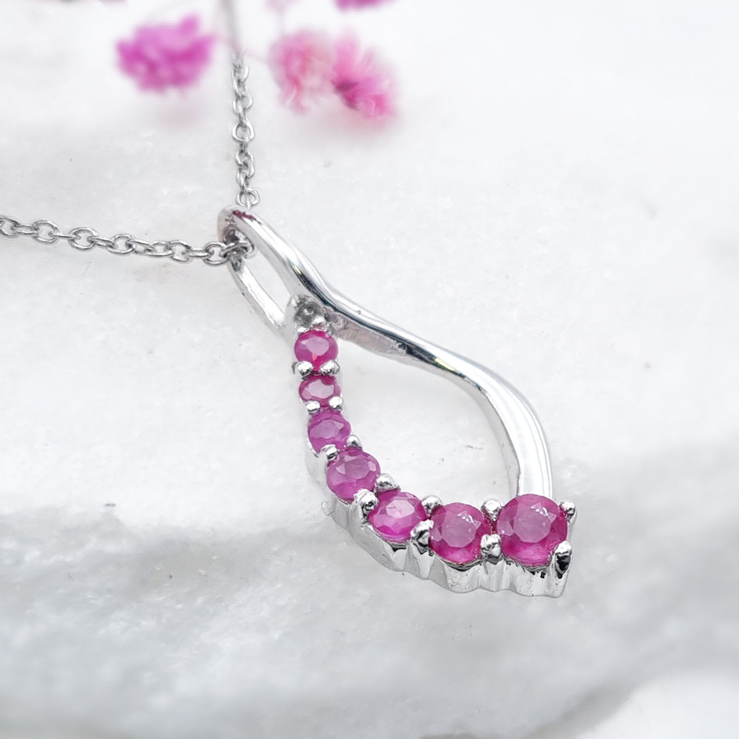 Srebrny łańcuszek damski Wisiorek z rubinami