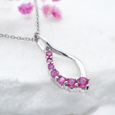 Naturalny rubin: Ilość/Waga: 7/0.65 ct, Kształt/Wielkość: Okrągły/1.70-3.00 mmWielkość wisiorka: ok. 24x11 mmDługość łańcuszka: ok. 45 cm