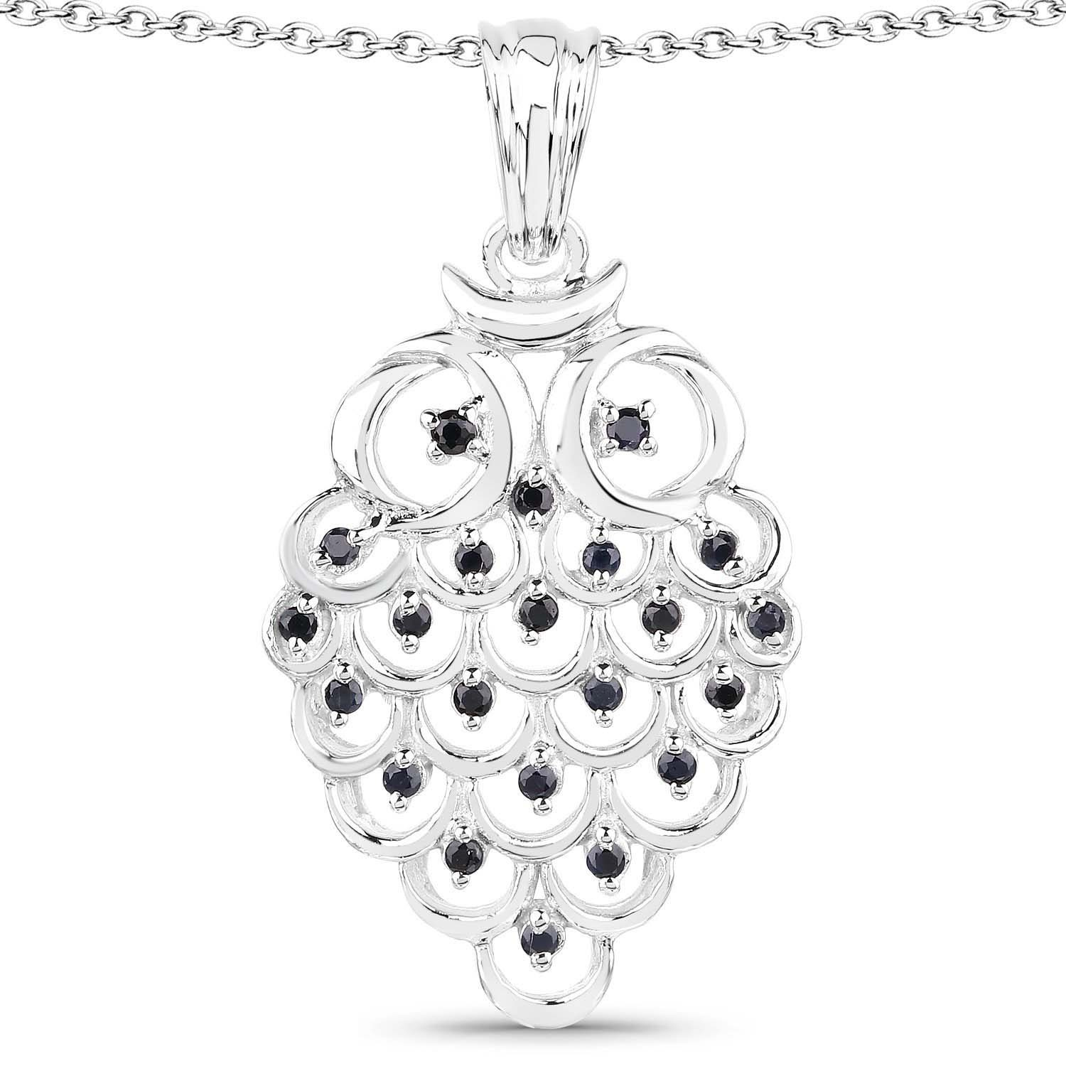 Naturalny szafir niebieski: Ilość/Waga: 22/0.68 ct, Kształt/Wielkość: Okrągły/1.50 mm (20szt), 1.70 mm (2szt)Wielkość wisiorka: ok. 40x25 mmDługość łańcuszka: ok. 45 cmWłaściwości kamieni