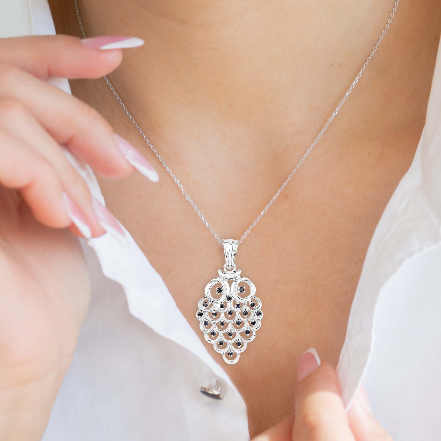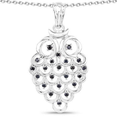 Wisiorek z srebra najwyższej próby 925, wysadzany 22 naturalnymi szafirami niebieskimi.