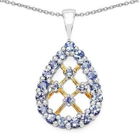 Naturalny tanzanit: Ilość/Waga: 21/1.27 ct, Kształt/Wielkość: Okrągły/2.50 mm (17szt), 1.50 (4szt)Wielkość wisiorka: ok. 27x15 mmDługość łańcuszka: ok. 45 cm