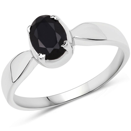 Klasyczny srebrny pierścionek z 1,00 ct naturalnym szafirem niebieskim. Pierścionek wykonany jest z srebra próby 925 i dodatkowo pokryty rodem.