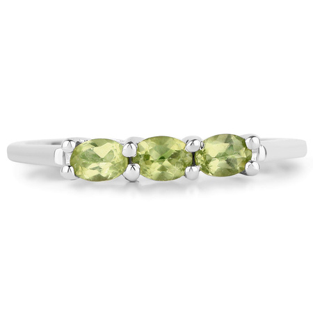 Naturalny perydot: Ilość/Waga: 3/0.60 ct, Kształt/Wielkość: Owal/4x3 mmWielkość korony pierścionka: ok. 4x13 mmWłaściwości kamieni