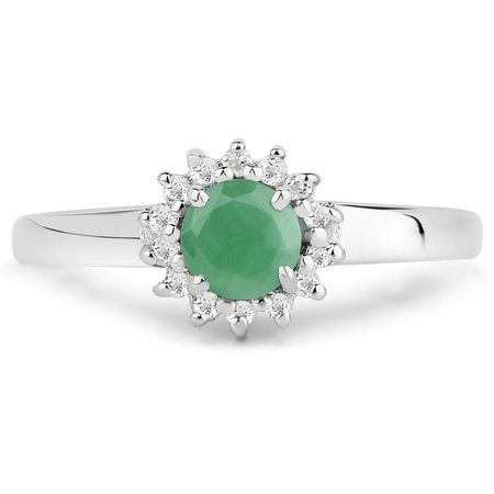 Naturalny szmaragd: Ilość/Waga: 1/0,50 ct , Kształt/Wielkość: Okragły/5 mmNaturalny kryształ górski: Ilość/Waga: 14/0,21 ct , Kształt/Wielkość: Okrągły/1,30 mmWielkość korony pierścionka: ok. 8x8 mmWłaściwości kamieni