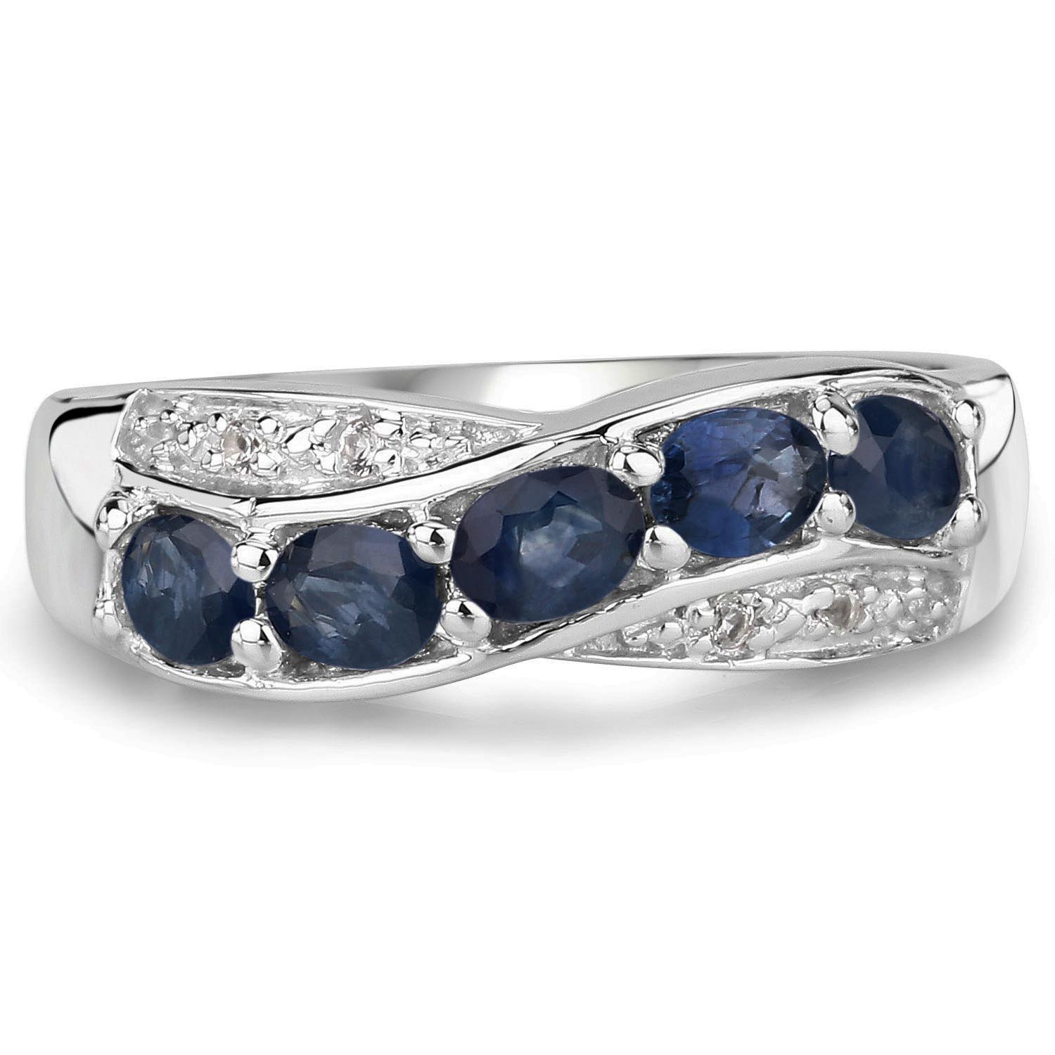 Przepiękny komplet biżuterii wykonany z rodowanego srebra najwyższej próby 925, składający się z kolczyków, pierścionka, łańcuszka oraz wisiorka, wysadzany naturalnymi szafirami niebieskimi i kryształami górskimi.