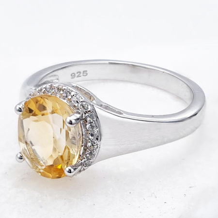Naturalny cytryn: Ilość/Waga: 1/1.70 ct, Kształt/Wielkość: Owal/9x7 mmNaturalny kryształ górski: Ilość/Waga: 26/0.13 ct, Kształt/Wielkość: Okrągły/1.00 mmWielkość korony pierścionka: ok. 10x10 mmWłaściwości kamieni