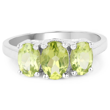 Naturalny perydot: Ilość/Waga: 3/1.73 ct, Kształt/Wielkość: Owal/7x5 mm (1 szt), 6x4 mm (2 szt)Wielkość korony pierścionka: ok. 13x7x5 mmWłaściwości kamieni