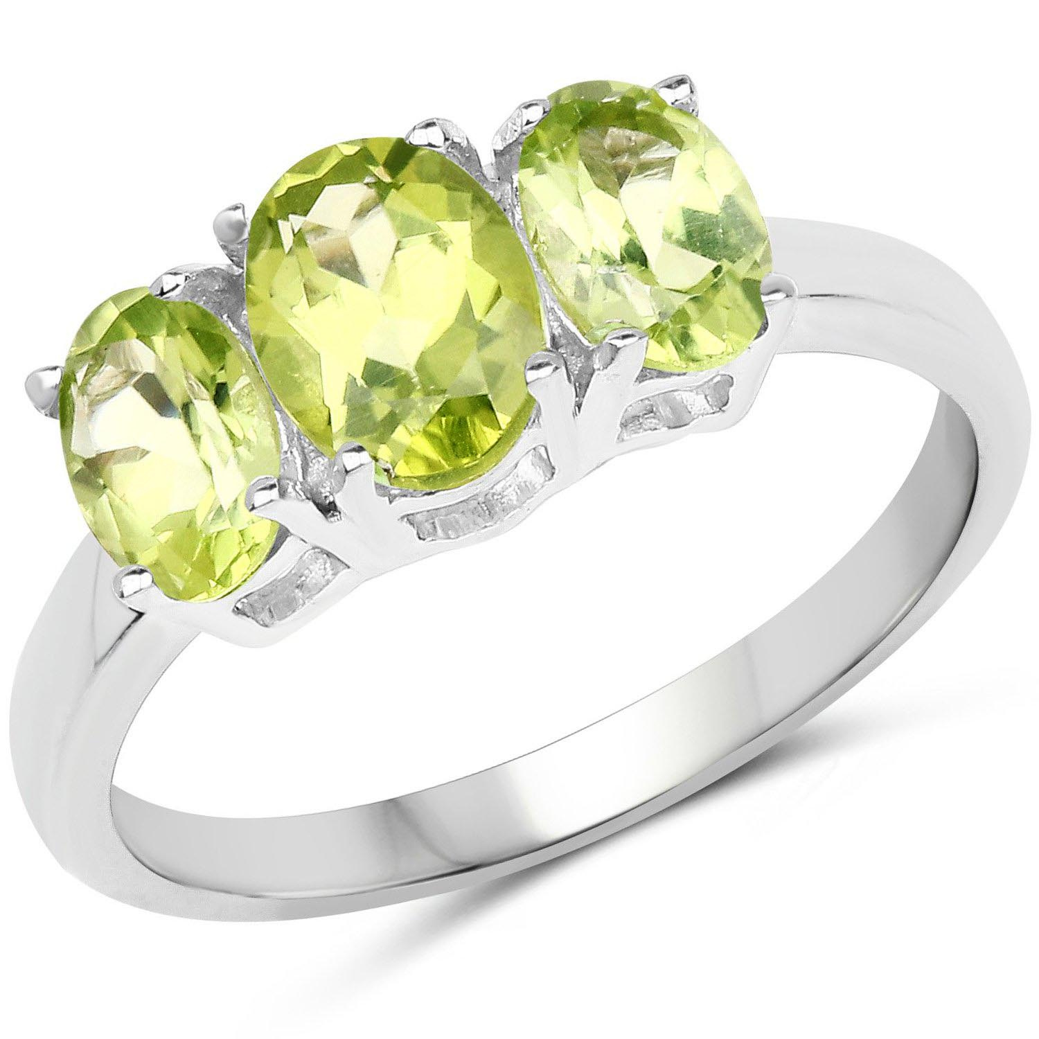 Naturalny perydot: Ilość/Waga: 3/1.73 ct, Kształt/Wielkość: Owal/7x5 mm (1 szt), 6x4 mm (2 szt)Wielkość korony pierścionka: ok. 13x7x5 mmWłaściwości kamieni