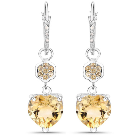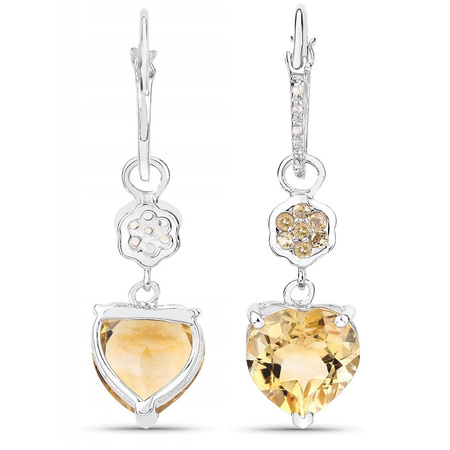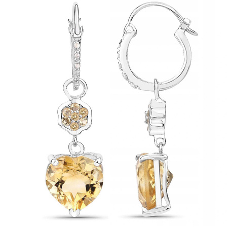 Naturalny cytryn - serce: Ilość/Waga: 2/6.00 ct, Kształt/Wielkość: Serce/10 mmNaturalny cytryn - okrągły: Ilość/Waga: 14/0.23 ct, Kształt/wielkość: Okrągły/1.50 mmNaturalny kryształ górski: Ilość/Waga: 10/0.15 ct, Ilość/Waga: Okrągły/0.90 mmWielkość kolczyków: ok. 32x10 mmWłaściwości kamieni