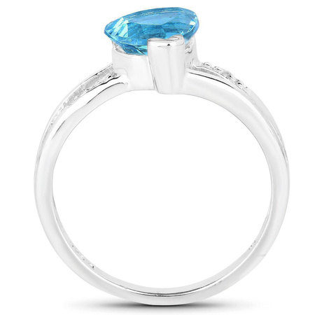 Prześliczny srebrny pierścionek z naturalnym topazem niebieskim i diamentami, wykonany z rodowanego srebra próby 925.