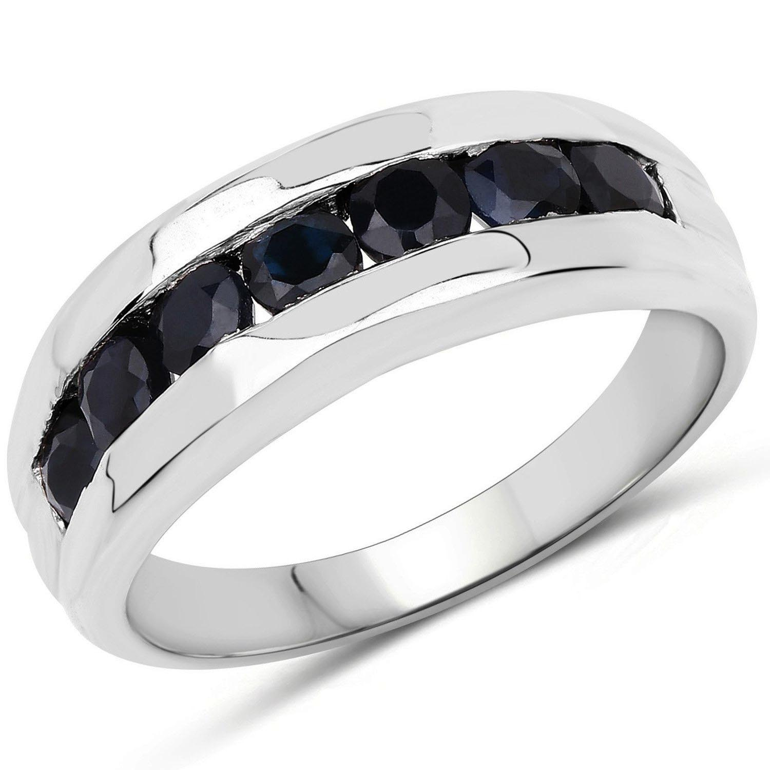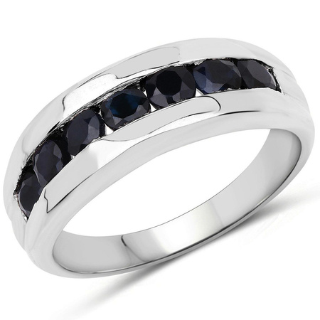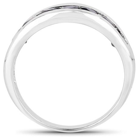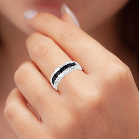 Srebrny pierścionek z naturalnymi czarnymi szafirami, wykonany ze srebra rodowanego próby 925.