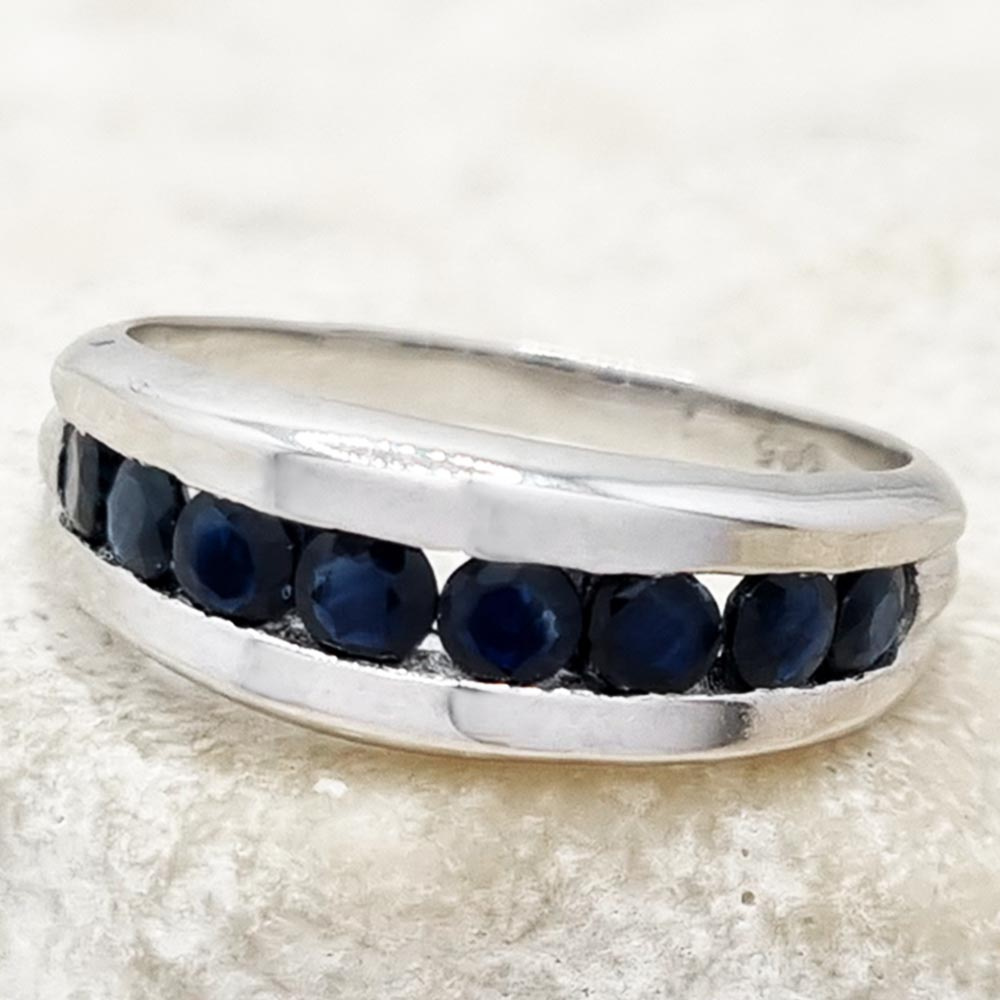 Pierścionek obrączka ze srebra 925 z szafirami naturalnymi