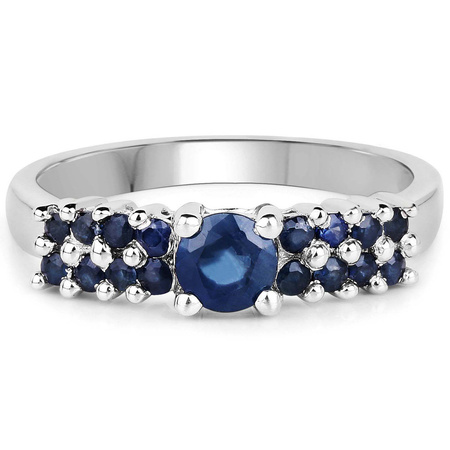Srebrny pierścionek z naturalnymi szafirami niebieskimi