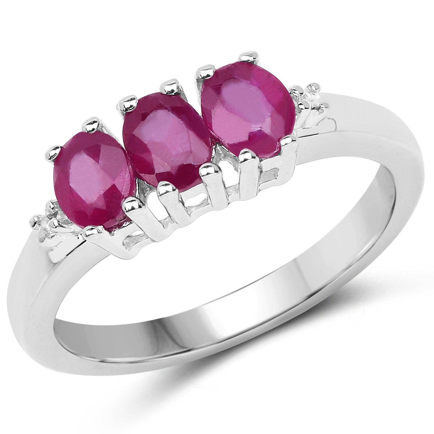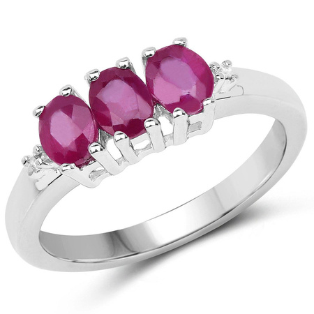 Naturalny rubin: Ilość/Waga: 3/1.14 ct, Kształt/Wielkość: Owal/5x4 mmNaturalny diament: Ilość/Waga: 2/0.01 ct, Kształt/Wielkość: Okrągły/1.00 mmWielkość korony pierścionka: ok. 14x6 mmWłaściwości kamieni