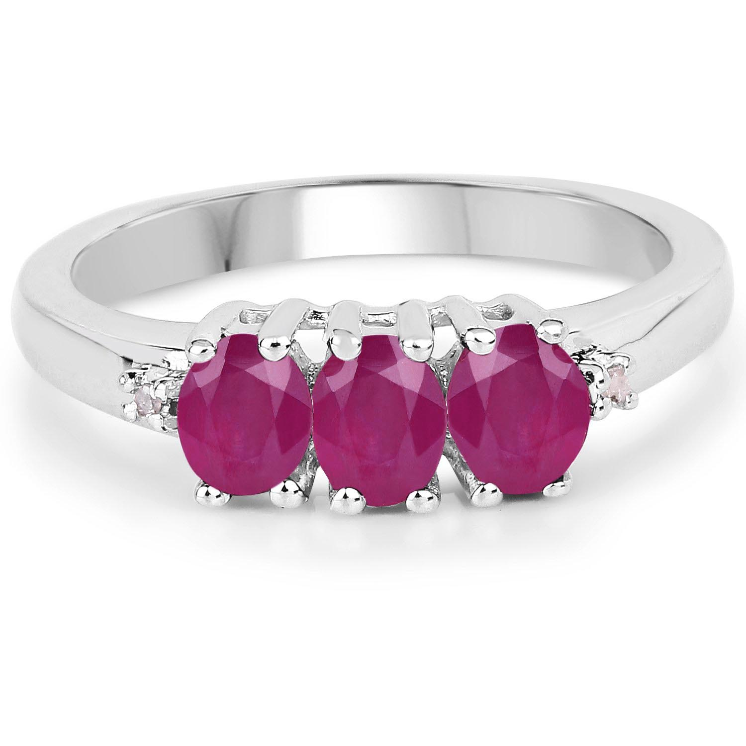 Delikatny srebrny pierścionek z 3 naturalnymi rubinami o prześlicznej barwie oraz 2 diamencikami, osadzonymi w lśniącym rodowanym srebrze próby 925.