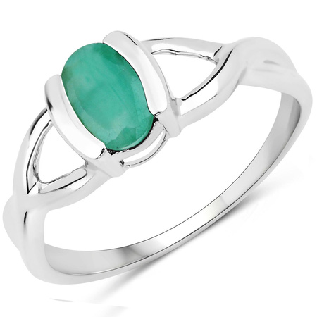 Srebrny pierścionek z rodowanego srebra najwyższej próby 925 z naturalnym szmaragdem kolumbijskim o intensywnym kolorze.