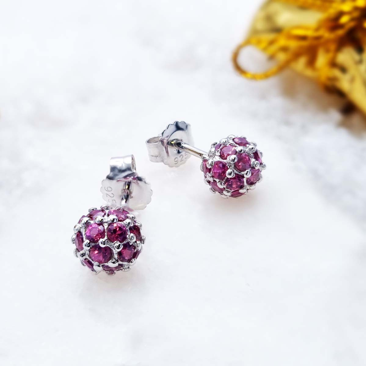 Naturalny granat rodolit: Ilość/Waga: 42/2.10 ct, Kształt/Wielkość: Okrągły/2.1 mmWielkość kolczyków: 5Właściwości kamieni