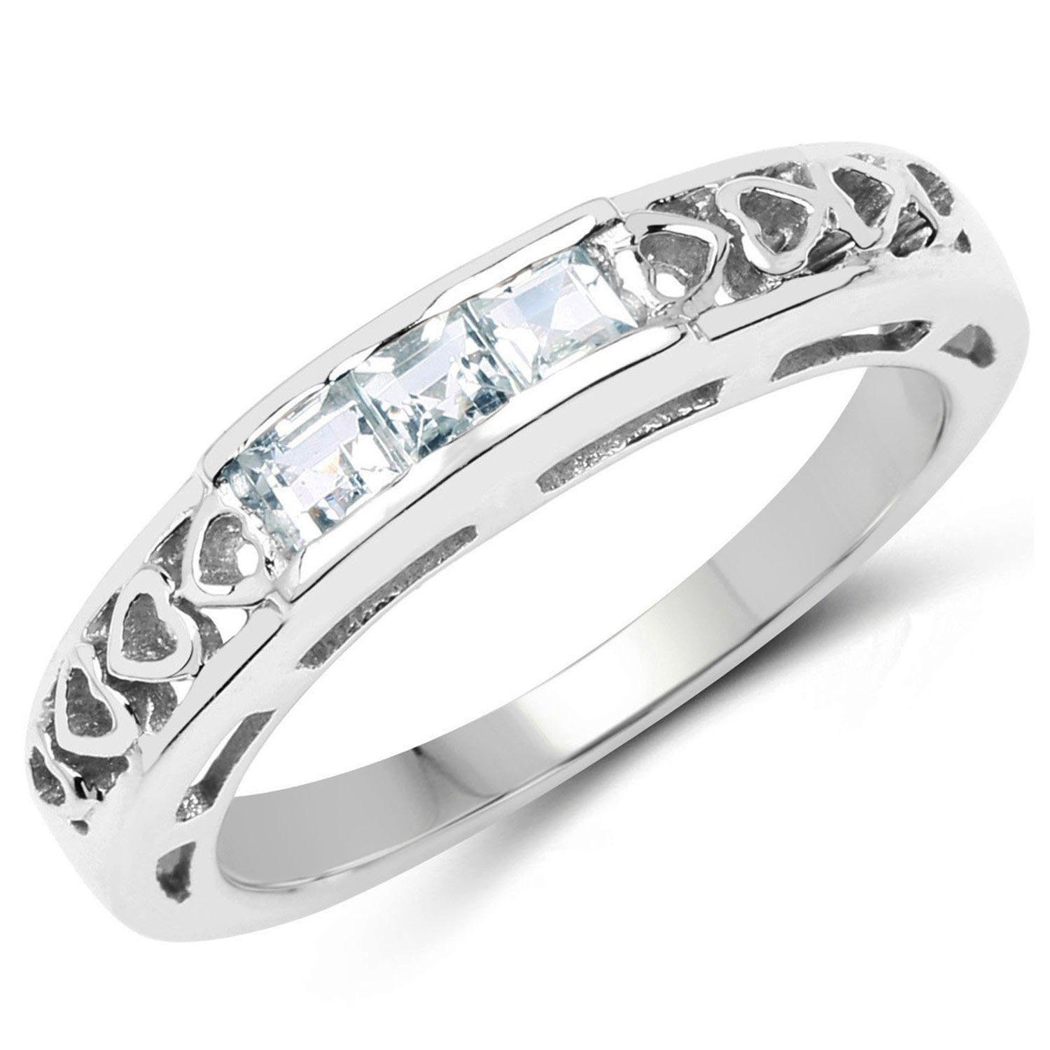 Rodzaj produktu: Srebrny pierścionek z naturalnymi akwamarynamiKruszec: Srebro próby 925 rodowaneWaga: ok. 2.97 grKamienie: Naturalny akwamarynŁączna waga kamieni: ok. 0,24 ctPochodzenie kamieni: Brazylia